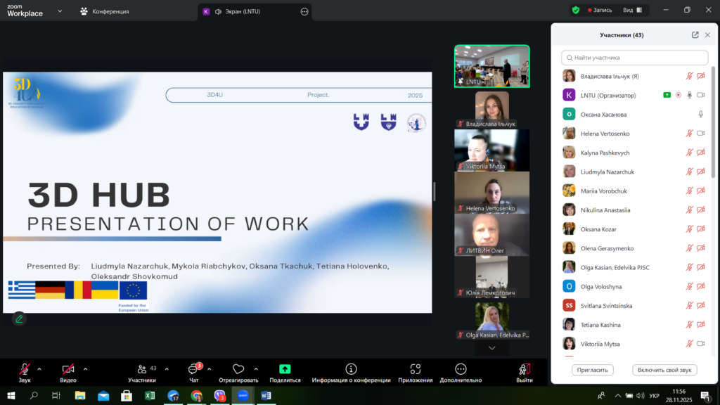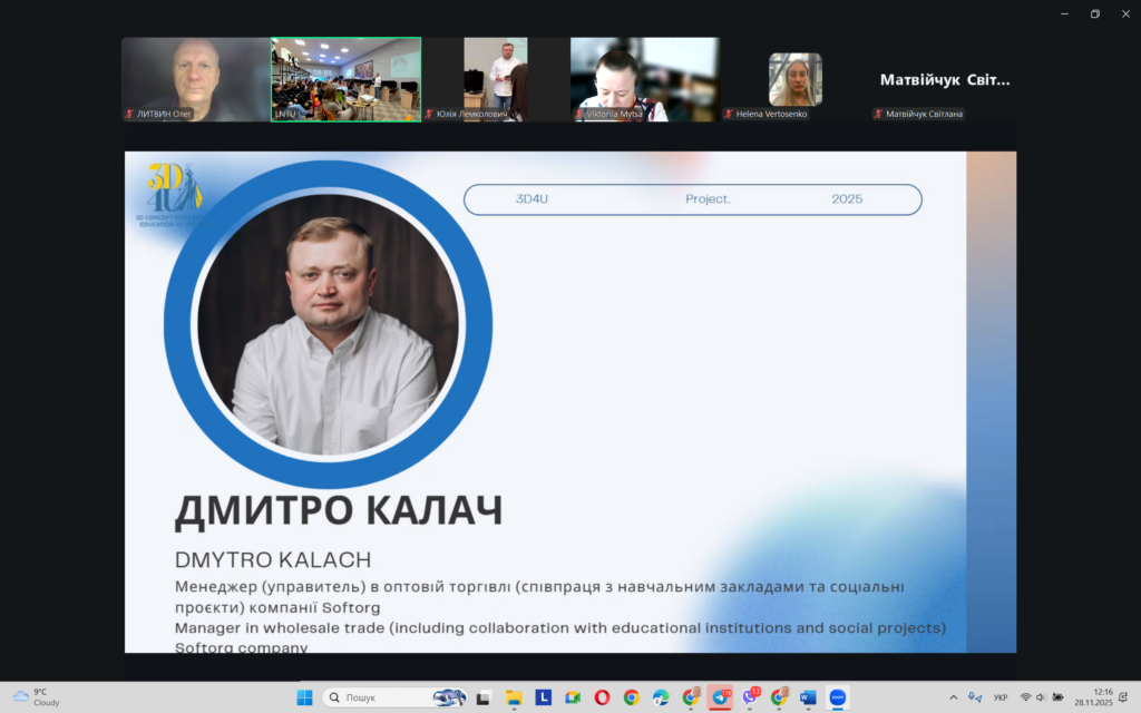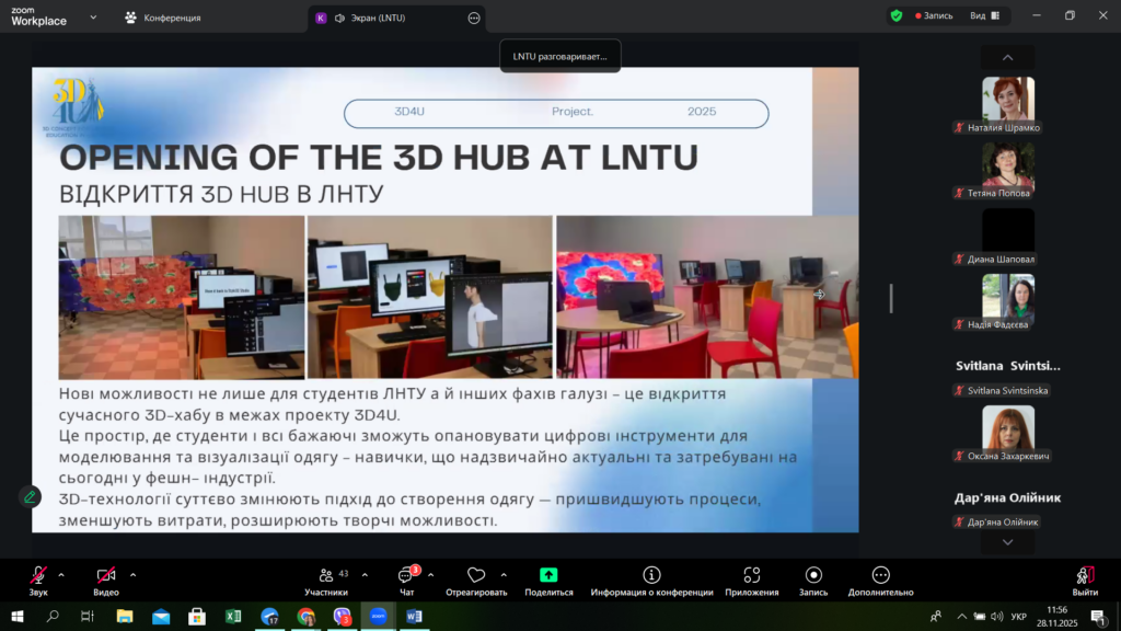 28 листопада 2025 року в Луцькому національному технічному університеті в межах проєкту ERASMUS+ 3D4U «3D концепції для освіти моди в Україні» відбулася презентація роботу 3D HUBу – центру впровадження та поширення 3D-технологій для фешн-індустрії в Україні.
