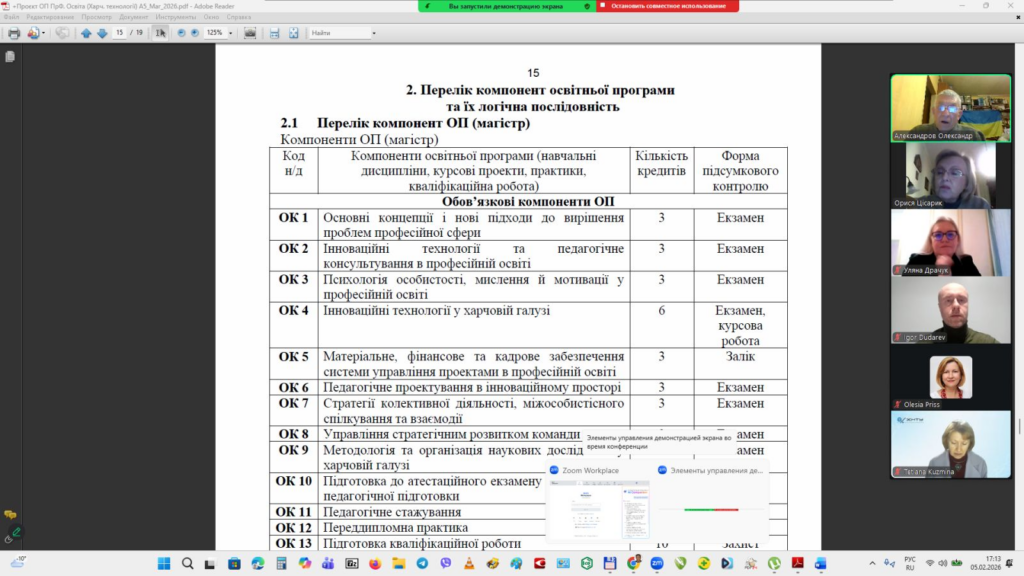 05.02.2026 р. на кафедрі харчових технологій та хімії Луцького національного технічного університету відбулася знакова зустріч академічної спільноти, присвячена обговоренню та модернізації освітніх програм (ОП) спеціальностей А5 Професійна освіта (Харчові технології) та G13 Харчові технології.